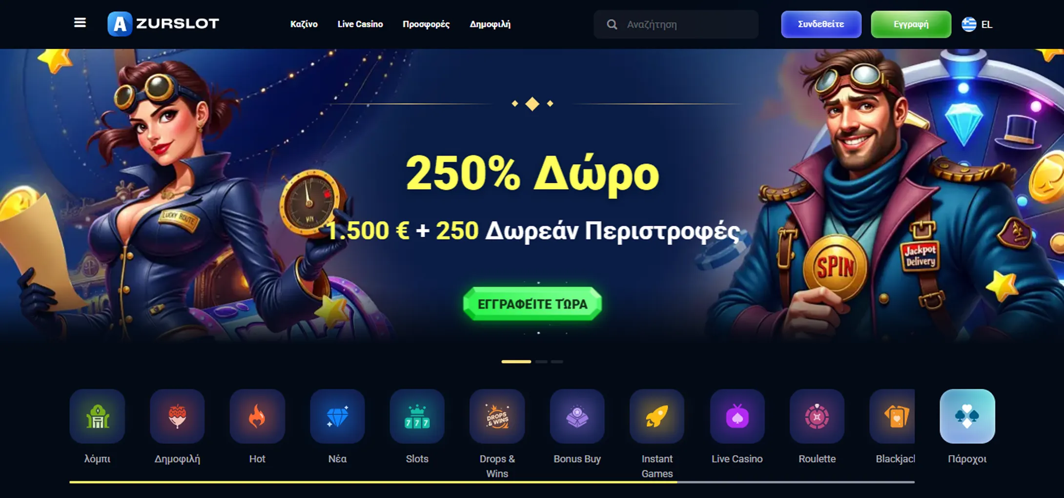 Ανακαλύψτε τις κορυφαίες προσφορές στο AzurSlots καζίνο! Απολαύστε μπόνους καλωσορίσματος, εβδομαδιαίες επαναφορτώσεις, δωρεάν περιστροφές, επιβραβεύσεις VIP, προσφορές επιστροφής μετρητών και συναρπαστικά τουρνουά. Διεκδικήστε την ανταμοιβή σας σήμερα!