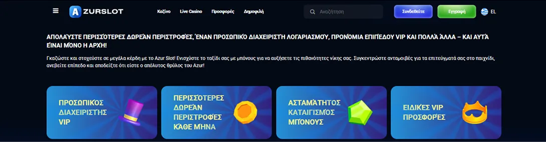 Αποκλειστικές Προσφορές και Μπόνους Καζίνο στο AzurSlots GR