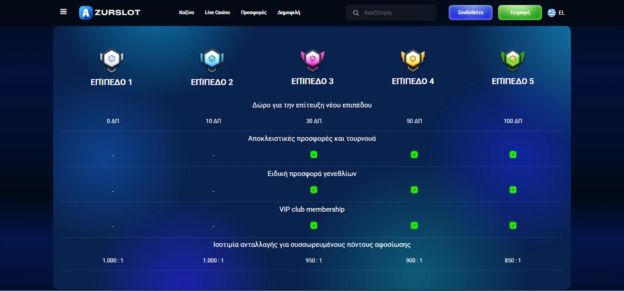 | Βαθμίδα VIP | Προνόμια |